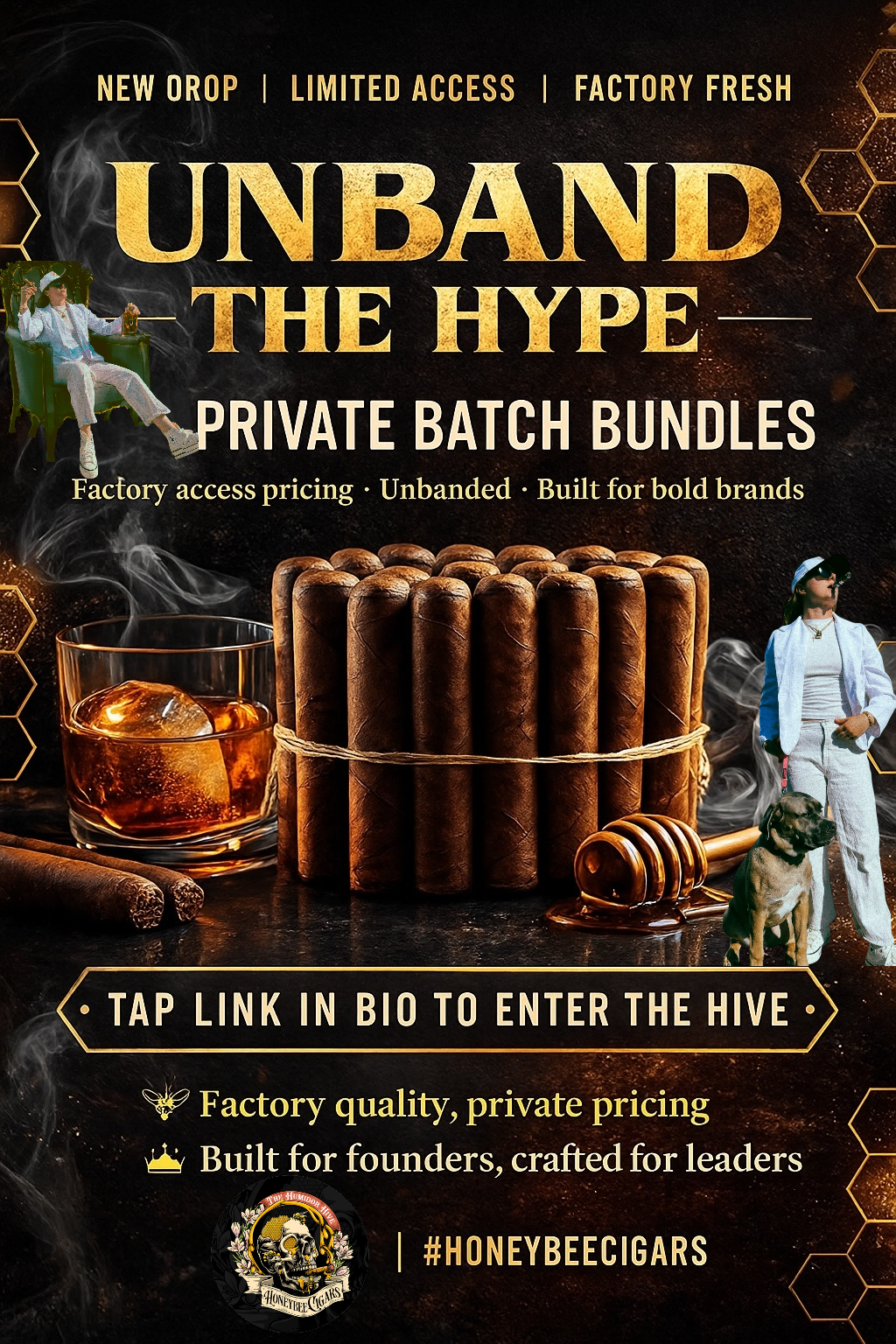 HoneyBee Cigars offers a boutique, project-managed approach to cigar creation and factory access. Whether you’re developing a custom blend and band from the ground up, or you already know what you need and simply require trusted access to premium cigars, we guide the process with clarity and intention.